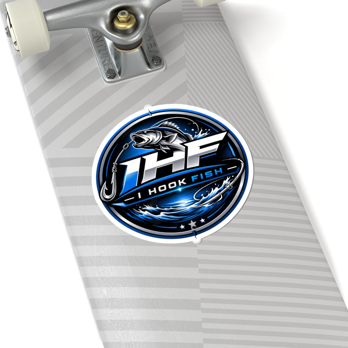 A rugged, high-gloss decal that brings bold angling pride to your gear. This kiss-cut vinyl sticker features a dynamic fishing crest with a leaping bass, swirling water, and strong lettering that reads “I Hook Fish.” The intense blues, deep blacks, and metallic highlights pop on laptops, coolers, tackle boxes, and water-resistant journal covers (for indoor use). It applies smoothly without bubbles and holds tight with a permanent acrylic adhesive—so your emblem stays put while you chase the next strike or show your love for the sport around town.
