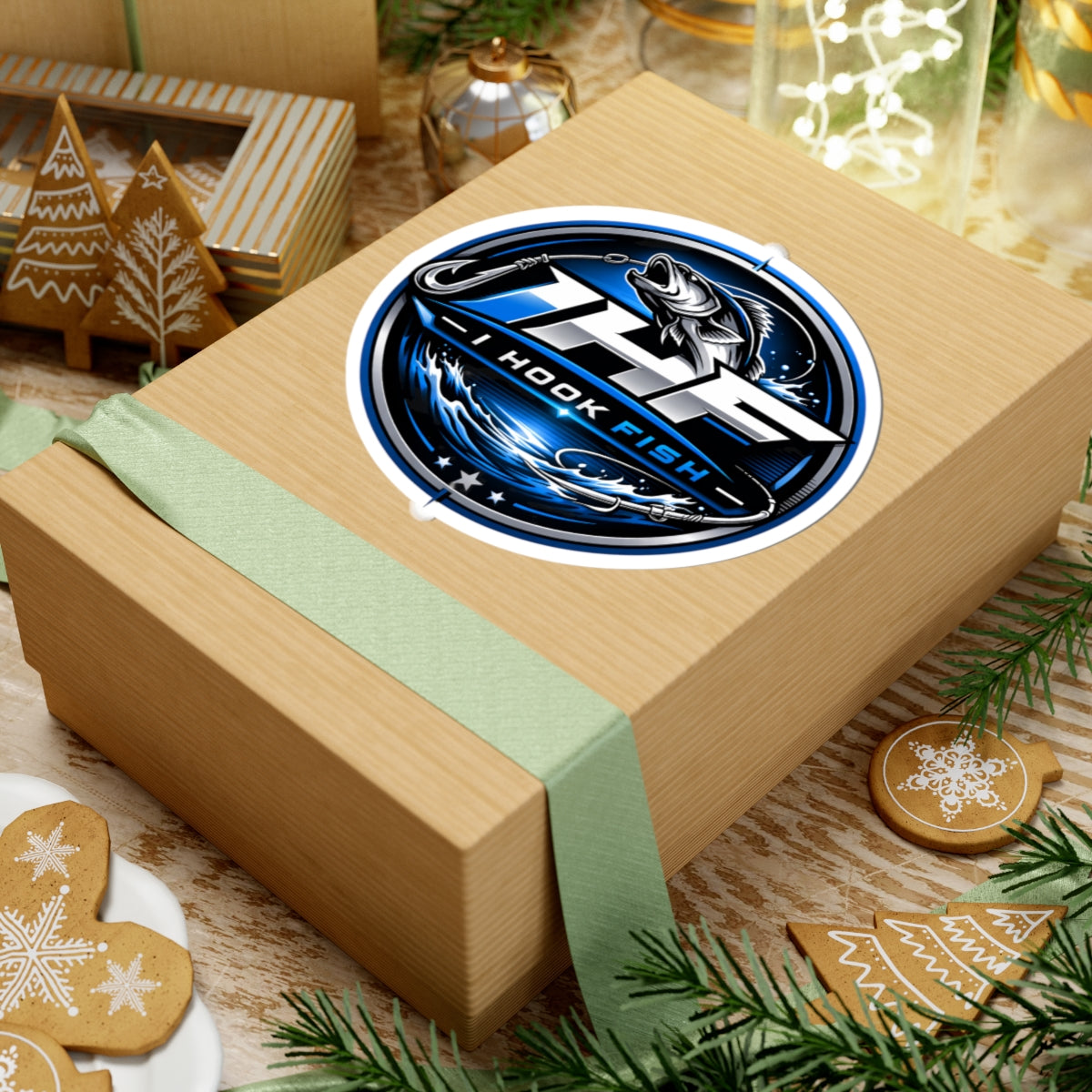 Fishing Logo Sticker — “I Hook Fish” Round Kiss-Cut Decal